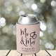 Dê uma torrada de casamento e seus convidados de casamento uma lembrança divertida mantendo o seu dia especial com este rosa pincelado personalizado pode resfriar com "Sr. & Sra." escrito em um grande roteiro e uma ilustração de dois anéis de casamento juntos. Adicione seu nome e data do casamento.