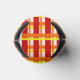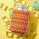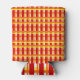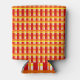 Esta pode ser mais fria tem uma design de Arte Deco de uma xadrez com linhas grossas e finas em vermelho, laranja e amarelo.