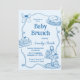 Portas Desenhadas Mão Azul Bebê Convite Brunch
