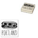 Apresenta uma ilustração original de um sanduíche de lagosta, com PORTLAND em caracteres divertidos.