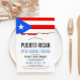 Uma bandeira porto-riquenha escreveu um cartão de convite branco para o seu próximo evento temático porto-riquenho. Um item de excelente a ser usado para um evento de cozinha de comida ou churrasco de seleção de comida especial.
