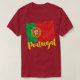Um design estilizado da bandeira portuguesa vermelha e verde com a palavra Portugal em letras-guião. País, lugares, patrimônio.