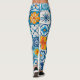 Portuguese Azulejo Tile Leggings – Blue & Yellow M