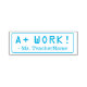 Este design de carimbo encorajador apresenta a mensagem de elogio "A+ WORK!" e o nome de um professor ou educador personalizado. Pode ser usado por um professor ou educador ao marcar missões, para reconhecer que o aluno fez um trabalho de excelente.