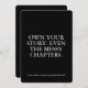 Inspire-a a abraçar cada capítulo com este cartão maravilhosamente desenhado com as palavras: "Possua a tua história. Até os capítulos bagunçados." Um presente personalizado pensativo para mulheres, raparigas, amigos ou para ti. Uplifing, empoderamento, inesquecível. Possuir seu cartão de história, cartão inspiracional personalizado, cartão personalizado para ela, cartão motivacional para mulheres, cartão de capítulos confuso, cartão de mensagem personalizado, presente para a garota, cartão de citação empoderador, presente de amor próprio, cartão de saúde mental, cartão de amizade, cartão de graduação, encorajamento de terapia, oferta de cura, cartão de transição de vida, cartão de citação personalizado cartão inspirado, cartão literário, cartão de confiança, cartão de mulher forte, cartão de encorajamento para mulheres, presente de crescimento pessoal, presente de empoderamento feminino, cartão para amiga, cartão para filha, cartão feminista, cartão de história para mulheres, cartão para escritor, cartão de autoestima, cartão de autoatendimento personalizado, cartão de oferta para treinadores de vida, presente para estudante, cartão com citação, cartão de aniversário para ela