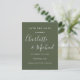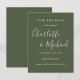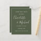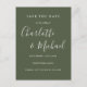 Apresentando nomes de estilo de assinatura, este elegante verde-oliva salva o cartão de data pode ser personalizado com suas informações especiais em letras brancas modernas. Projetado por Thisnotme©