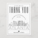 Uma forma excelente de mostrar apreço ao convidado que viajou tão longe do seu caminho para vê-lo, nesta bela cidade. Este obrigado especial que você faz é adaptado ao convidado que esteve no seu casamento na bela cidade de Atlanta, Georgia. Ele apresenta uma linha do horizonte estilizada da cidade na frente do cartão. Ao contrário, é um ponto para sua própria mensagem exclusiva. Use as funções de personalização para adicionar uma foto, se desejar.