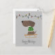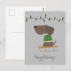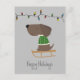 Ilustração de cães modernos e caprichosos com suéter colorido no trenó, uma série de luzes de férias e texto personalizável de "Feriados Felizes"
