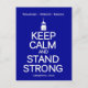 Uma reviravolta nos posters populares de "Manter Calmo e Continuar", inspirada na campanha moral britânica durante o WW2. Este cartão de posto apresenta uma silhueta no topo do icônico Loco Municipal de Georgetown e as palavras "lembre-se, reconstrua, restaure". Abaixo disso, "Fique calmo e fique forte. Georgetown 2013".