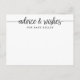 Estes cartões de conselho simples são excelentes para o seu chá de fraldas, ou qualquer festa! Envie-os com seus convites ou mande-os para a sua festa para os convidados completarem. Adicione seu próprio texto no formulário modelo. A parte traseira é vazio para mais escrevendo ou acessar os menus avançados escolhendo "personalizar ainda mais" para adicionar seu próprio texto à parte traseira. Você também pode alterar a cor de fundo usando o menu avançado.