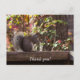 Cartão postal de agradecimento com um esquilo sentado no corrimão do deque no Silver Dollar City comendo um petisco de noz que lhe atiramos durante a temporada de outono. Procurando mais impressões ou produtos? Sinta-se à vontade para visitar minha loja: http://www.zazzle.com/timelessmomentsphtgy Esta foto foi tirada por Jennifer White com Timeless Moments Photography. Todas as imagens são protegidas por direitos autorais © Timeless Moments Photography.