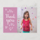 Cartão de agradecimento personalizado para crianças, completo com corações brancos manuscritos, fundo de cor personalizado e modelo de foto para que você possa adicionar uma foto do seu filho.