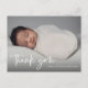 Este cartão de agradecimento de batismo de foto de bebê com Roteiro Moderno e econômico apresenta uma bela foto horizontal de sangria total e agradecimento manuscrito e texto editável mínimo. Clique no botão de edição para personalizar este design.