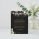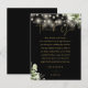 Um elegante cartão de agradecimento de recepção de casamento com iluminação de corda floral preta e dourada. Personalizado com sua mensagem especial de agradecimento em tipografia elegante. Um agradecimento único para seus convidados. Concebido por Thisisnotme©