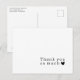 Cartão postal de agradecimento com letra em estilo de máquina de escrever simples e coração. O verso inclui um endereço de devolução, espaço para escrever uma mensagem pessoal à mão e texto de assinatura que pode ser apagado para escrever uma mensagem pessoal quando os cartões postais chegarem.