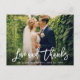 Cartão postal de agradecimento de casamento com foto de amor e gratidão em escrita moderna