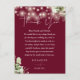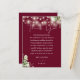 Um elegante cartão de agradecimento de recepção de casamento com luzes de corda florais burgundy. Personalizado com sua mensagem especial de agradecimento em tipografia elegante. Um agradecimento único para seus convidados. Concebido por Thisisnotme©