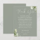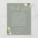 Um cartão de agradecimento de recepção de casamento elegante com folhagem floral verde sálvia. Personalizado com sua mensagem especial de agradecimento em tipografia estilosa. Um agradecimento especial para seus convidados. Criado por Thisisnotme©