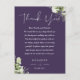 Um cartão de agradecimento de recepção de casamento elegante com flores roxas. Personalizado com sua mensagem especial de agradecimento em tipografia estilosa. Um agradecimento especial aos seus convidados. Concebido por Thisisnotme©