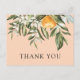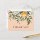 Agradeça aos seus convidados por celebrar a futura mamãe! Este cartão de agradecimento de chá de bebê com tema de bebês fofos apresenta uma cascata de verde em aquarela e laranjas clementinas. Personalize com suas informações ou clique em "Clique para personalizar ainda mais" para editar estilos de fonte, tamanho e cores.