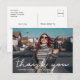 Cartão de agradecimento de formatura com foto de roteiro moderno.
