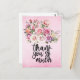 Postal Cartão de agradecimento de rosas cor-de-rosa em fu