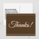Este design de cartão postal de agradecimento sofisticado apresenta a mensagem "Obrigado!" na frente, juntamente com uma mensagem personalizada no verso. Pode ser usado para mostrar gratidão a alguém que fez algo especial.