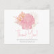 Este cartão de agradecimento Boho é o cartão perfeito para agradecer aos seus convidados por virem e pelos presentes lindos. A bela concha em aquarela, coral e folhagem com um toque de rosa para um chá de bebê feminino. O verso tem espaço suficiente para você escrever uma nota personalizada à mão ou você pode digitar sua mensagem de agradecimento nesta área. O convite correspondente está disponível na loja para combinar.