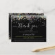 Postal Cartão de Agradecimento Preto com Brilho Holográfi