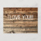 Cartão postal de uma textura rica em excelentes de madeira de carvalho velha com o texto: Eu te amo!! pintado em branco.