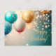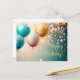 Cartão de saudação festiva com balões dourados e azuis e confetes