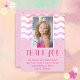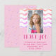 Cartão de Aniversário de Menina com Estrelas Cor-de-Rosa Obrigado. Cartão de agradecimento de aniversário fofo para seus amigos e familiares. Envie sua foto e personalize o cartão com seu nome e texto. O cartão tem estrelas e ondas coloridas. Ótimo como cartão de agradecimento para meninas.