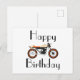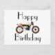 Este design tem uma motocicleta laranja e preta no meio. Na parte superior e inferior está escrito "Feliz Aniversário", em preto.