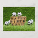 Cartão de aniversário do futebol com bolas na grama verde para o cartão postal do jogador e fã do futebol. Com uma design impressionante e um sentimento simples, este cartão é uma maneira memorável de desejar a uma de suas pessoas favoritas um momento feliz.