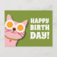 Celebre o dia especial de alguém com nosso encantador cartão de aniversário com um adorável gatinho rosa usando óculos estilosos contra um fundo verde vibrante! Essa ilustração moderna captura a essência da diversão e do capricho, tornando-a a maneira perfeita de alegrar o aniversário de alguém.