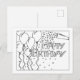 Este lindo desenho de linha preto e branco está pronto para ser colorido, para uma maneira única de DIY celebrar um aniversário. Este cartão apresenta a frase "Feliz Aniversário" e uma imagem de balões e confetes.