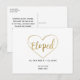 Uma maneira simples e elegante de compartilhar suas notícias de elopeamento com sua família e amigos. Este cartão-postal de anúncio de casamento apresenta um "Eloped" manuscrito envolto em um coração com uma camada de ouro falsa para um pequeno toque chic. Um aviso somente texto sem fotos, envie-o através do país ou do mundo declarando seu novo capítulo.