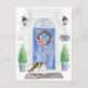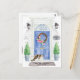 Anuncie seu novo endereço com nosso anúncio elegante com um gato Exótico de Pelo Curto, porta frontal azul, tapete de boas-vindas, placa de ardósia, topiárias e uma coroa floral sobre um fundo de tijolo cinza.