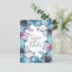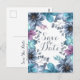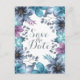 Cartão de Save the Date com flores em aquarela escura em azul, azul turquesa e roxo.