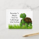 Um cartão de cumprimentos simpático e divertido de uma tartaruga feliz.