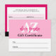 Postal Cartão de Certificado de Presente de Moda Magenta