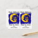 Este cartão-postal bonitinho de Halloween foi projetado para ser facilmente cortado em duas cartas. A imagem é de uma pequena coruja marrom vestida de chapéu de bruxa, e sentada sobre uma lua crescente amarela sonolenta. O texto negro acima diz "Feliz Dia das Bruxas", e abaixo "Aproveite a Tia" com sua assinatura. Perfeito para que os alunos do ensino fundamental ou pré-escolar deem aos seus amigos na festa de Halloween da escola, e também econômico! E os professores também podem personalizá-lo para dar aos alunos também!