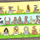 Três fileiras de coelhos estão escrevendo "Feliz Cumpleaños" com as orelhas.
