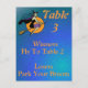 Cartões de Mesa de bruxa de Halloween por Artinspirou. Altere o texto para ajustado das necessidades do seu próprio partido. Esta placa vem na mesa 1, 2 e 3. Se você tiver mais de três mesas, edite uma ou mais placas para usar no mesa 4,5,6 etc. Design apresenta uma bruxa verde, segurando uma bolsa e voando para seu evento especial. Procure um convite correspondente em www.zazzle.com/artinspired*.