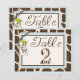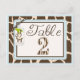Cartão de mesa com estampas de zebra e girafa, acabamento em renda 3D, laço de fita e etiqueta pendente de macaco fofo.