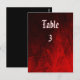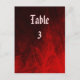 Cartão de mesa de casamento com fundo preto e vermelho em estilo gótico.