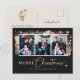 Espalhe alegria natalina com nosso Cartão de Natal Boho Férias da Coleção de Cartões de Natal Black Boho Botânico. Com um layout de colagem de fotos na frente para três de suas fotos favoritas, este cartão postal captura o espírito festivo. Personalize-o com seus momentos preciosos e faça esta temporada de festas inesquecível para todos que o receberem.
