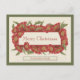 Este elegante cartão de Natal apresenta flores vermelhas vintage e design verde enquadrando uma mensagem de feriado personalizada em uma fonte vermelha que pode ser totalmente personalizada com seu cartões de natal "Feliz Natal" e seu nome de família, um personalize a mensagem na parte traseira do cartão. Ideias para incluir os nomes dos membros da sua família e o ano.