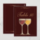 A coleção de casamento "Velho Mundo Wineglass" contém todos os itens de papel de carta que você precisa para completar um maravilhoso conjunto de casamento. Perfeito para um casamento para amantes de vinho ou quando o evento especial se realiza numa vinha, numa adega ou num destino no país do vinho. Esta placa de número de tabela pode ser personalizada para cada mesa. Os produtos correspondentes para criar uma celebração de casamento perfeitamente coordenada também estão disponíveis: