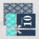© 2013 Designs socialitas. Nossa elegante placa de número da mesa branca damask tem uma fita falsa prateada e design de arco e é uma adição perfeita ao seu casamento ou evento especial. O fundo tem cores de azul marinho e turquesa aqua. Basta substituir o número na placa para cada mesa. Gosta deste design, mas gostaria de o ter numa cor diferente, por favor, não hesite em contactar Designs socialitas. OBSERVE QUE A FITA É UMA IMAGEM E IMPRESSA NA PLACA.